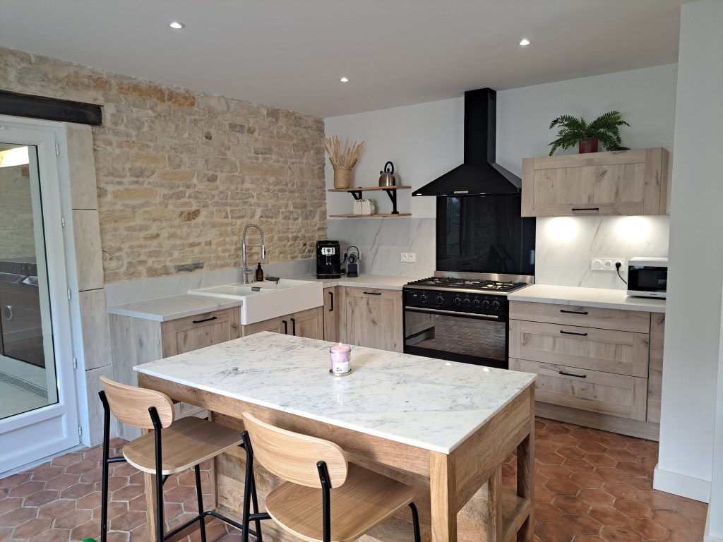 Venez découvrir notre spacieuse ferme de 200 m² entièrement rénovée en conservant le charme de l’ancien, accentué par une touche de modernité.