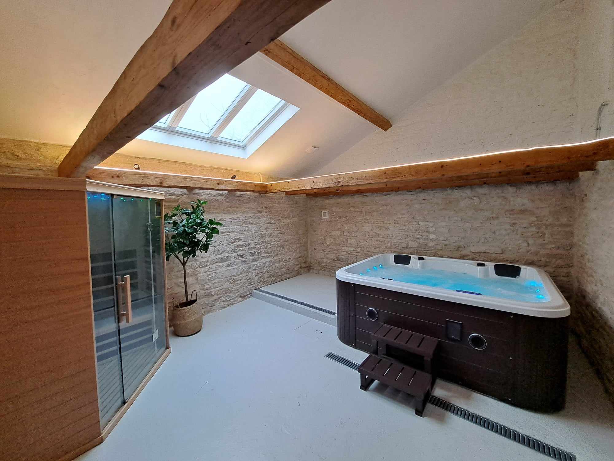 Après une belle journée de visite et de dégustation de vins de la région , venez profiter de l’espace Spa de la maison constitué d’un bain à remous et d’un sauna ou encore de l’espace extérieur.