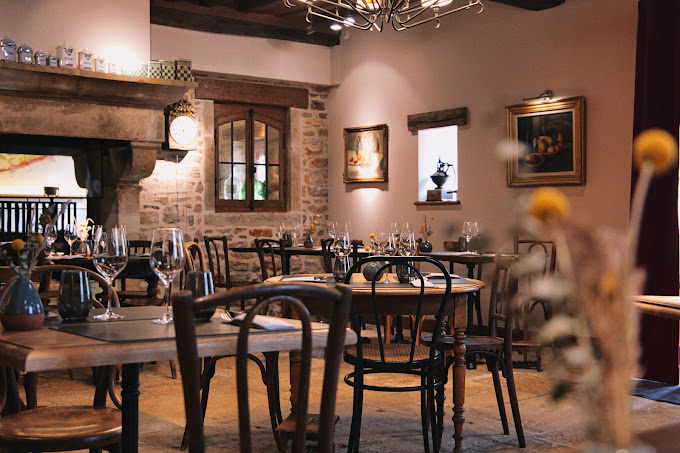 Cuisine du terroir dans un restaurant-bar à vin avec salle de bistrot, caveau du XVIe siècle et terrasse.