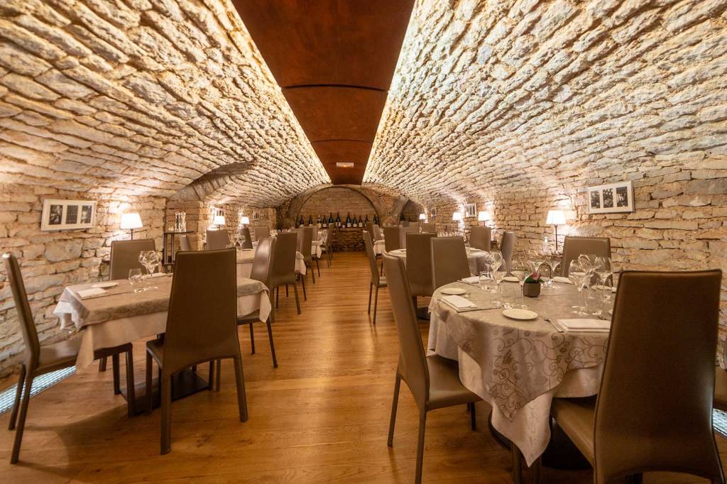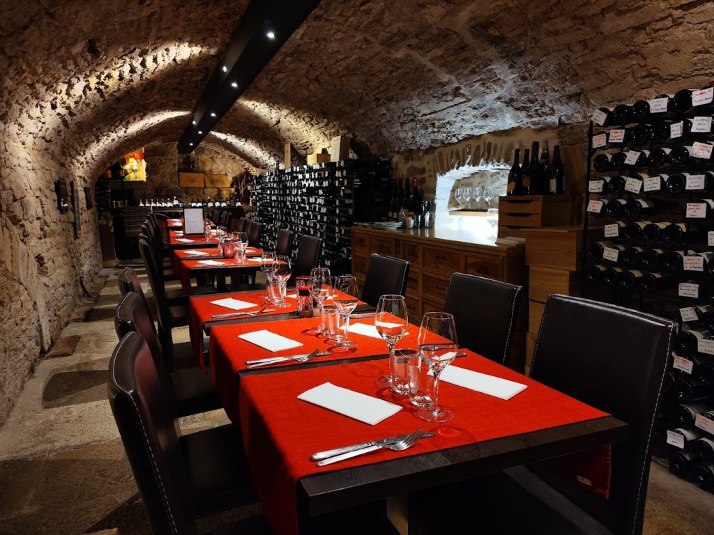 Repas dans un caveau en pierre. Cuisine bourguignonne et raffinée